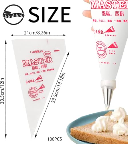 - 7️⃣ 📦 عبوة اقتصادية من 100 كيس: تأتي الأكياس في عبوة مكونة من 100 كيس كريمة لتزيين المخبوزات مقاس متوسط — خفيفة الوزن، وسهلة التخزين، وكافية لمشاريع تزيين متعددة.
