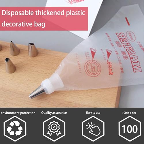 Generic - أكياس تزيين الكيك البلاستيكية للاستعمال مرة واحدة، أكياس كريمة تزيين متوسطة السمك لتزيين الكيك والمعجنات والكب كيك وتزيين الكوكيز، أكياس متينة للمطبخ المنزلي، والمخبز، والاستخدام المهني - 100 كيس