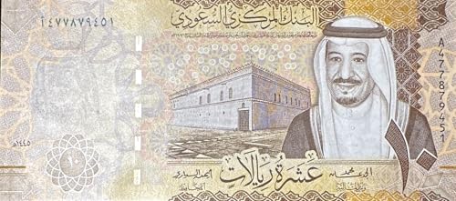Generic - 100 قطعة من النقود المزيفة مطبوعة بالكامل على الوجهين (10 ريال سعودي) مكدسات نقود واقعية للاطفال والطلاب والافلام وحفلات اعياد الميلاد والتلفزيون، الورق، متعدد الالوان