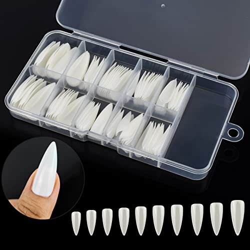 MELGO - أطراف أظافر صناعية مع علبة تخزين - أظافر كاملة للأظافر بـ 8 مقاسات لصالونات الأظافر وفن تزيين الأظافر بنفسك - أظافر صناعية متينة وتدوم طويلًا لإطلالة ساحرة - 100 قطعة (تأثير قطرات ماء، لون طبيعي)