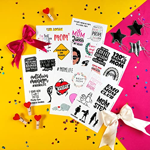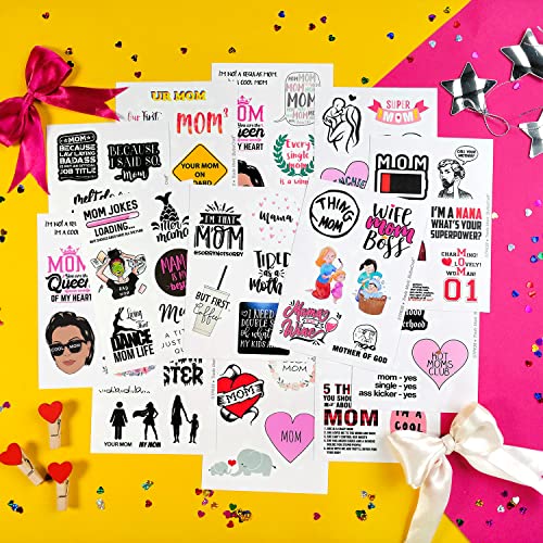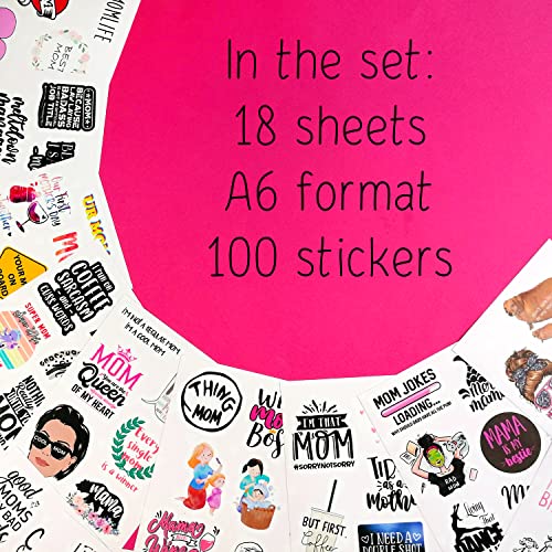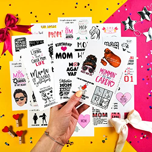 BulbaCraft - 100 قطعة من ملصقات الام المضحكة لزجاجات المياه - هدايا مضحكة للام، ملصقات للام، ملصقات ماما، ملصقات مخطط حياة الام، ملصقات عيد الام، هدايا عيد الام السعيدة، من لامباكرافت
