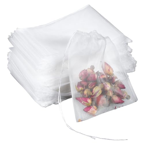 salbsever - 100 قطعة من اكياس الشاي لاوراق الشاي السائبة، اكياس شاي للاستعمال مرة واحدة، اكياس شاي شبكية فارغة صغيرة برباط للقهوة، الاعشاب، كيس التوابل، الطبخ في الحمام، 3.54 × 2.75 انش