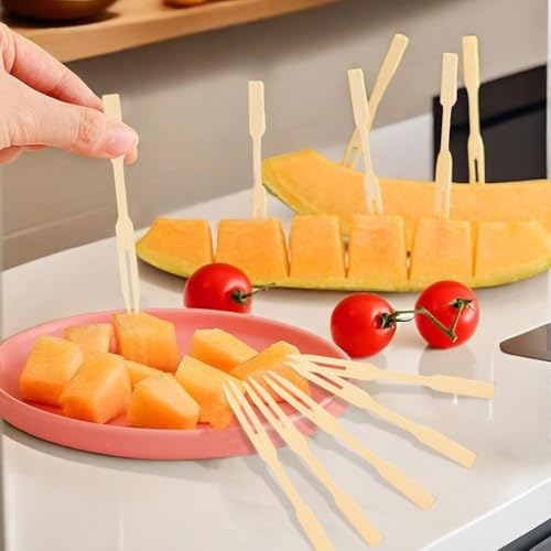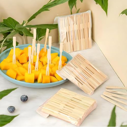 Generic - شوكة كوكتيل صغيرة مصنوعة خشب البامبو للاستعمال مرة واحدة ومناسبة شوكة مقبلات وأدوات وعيدان فاكهة بسنين للولائم والحفلات والبوفيهات، مجموعة من 100 قطعة