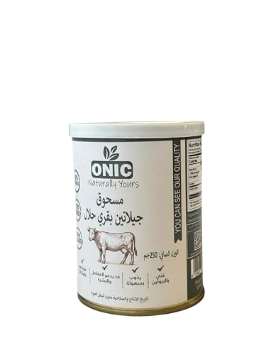 ONIC NATURALLY YOURS - مسحوق جيلاتين بقري نقي 100% – 250 جم | تماسك عالي Bloom 220 | حلال | جودة غذائية ممتازة | غني بالبروتين والكولاجين | خالٍ من الكربوهيدرات والدهون | مثالي للكيتو والدايت
