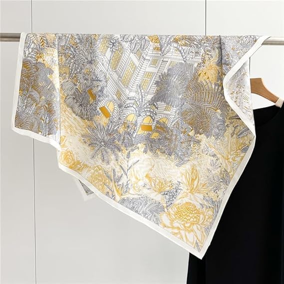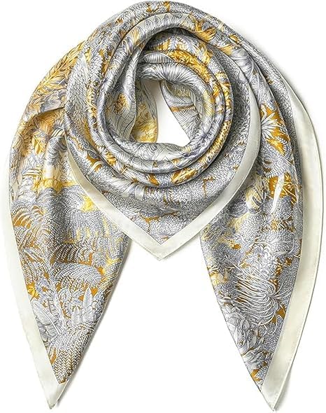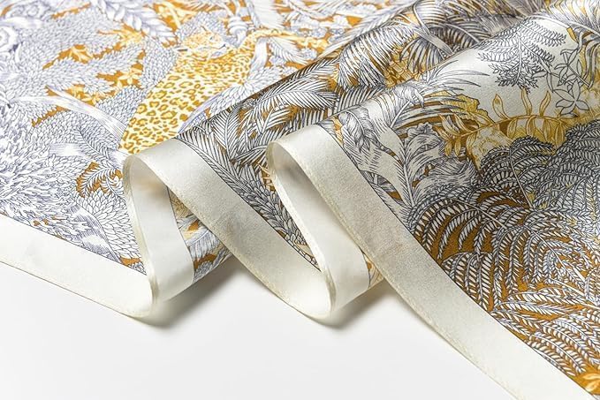 fashion mania - وشاح مربع كبير من حرير التوت النقي بنسبة 100%، وشاح راس خفيف الوزن 35 انش مع اربطة شعر للنساء، لون بيج مع نسيج انيق