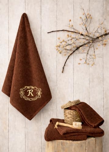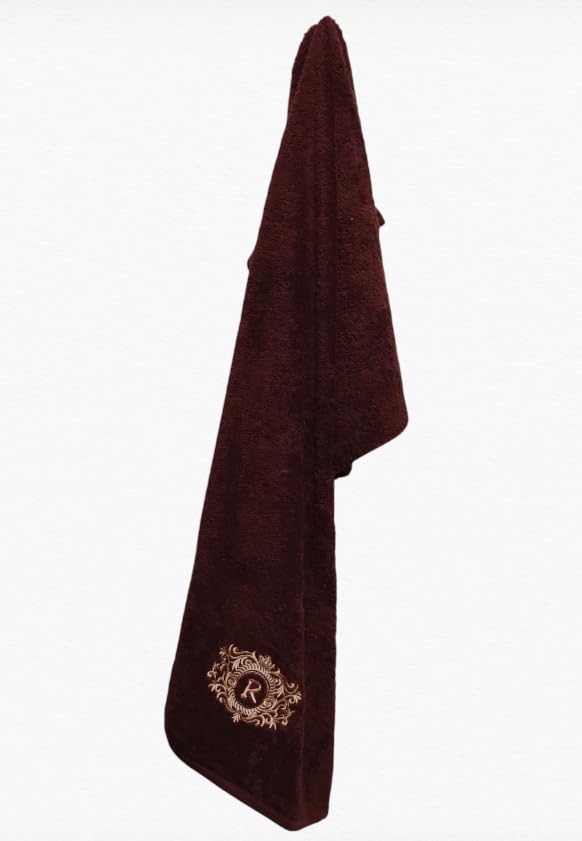 Generic - فوطة حمام مطرزة مصنوعة من القطن بنسبة 100% عالية الامتصاص وسريعة الجفاف للفنادق والمنتجعات الصحية (تطريز حرف R) (لون بني، 1.1× 0.55 متر)