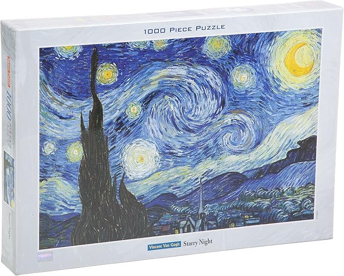 - تحفة فنية مميزة: تُعيد لعبة البازل المكونة من 1000 قطعة رسم لوحة "ليلة النجوم" الشهيرة، وهي منظر طبيعي تعبيري تحت سماء ليلية مليئة بالأجرام السماوية.