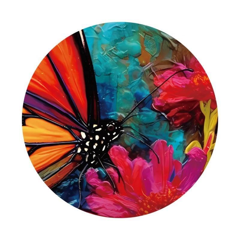 - تصميم فني جذاب: تتميز بصورة فراشة ملونة نابضة بالحياة على خلفية من الزهور الوردية الزاهية بألوان فنية مبهرة تجمع بين الأزرق والبرتقالي والوردي