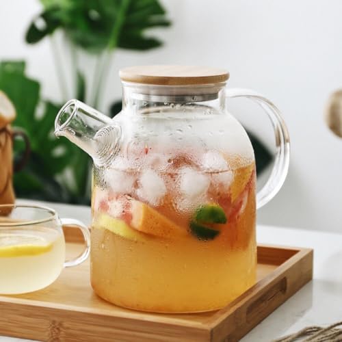 AREXOL - براد شاي زجاجي حراري بسعة 1000 مل مع مصفاة داخلية وغطاء خشبي لتجهيز الشاي والأعشاب السائبة بطريقة عملية وأنيقة للاستخدام اليومي في المطبخ وعلى الطاولة
