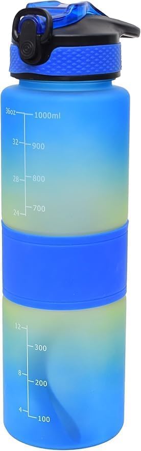 Generic - زجاجات مياه بلاستيك قابلة لإعادة الاستخدام سعة 1000 ملي شرب مانعة للتسريب مزودة بعلامات تحفيزية وللوقت رياضية للجيم والتمارين للرجال والنساء وللاطفال والمدرسة (HS_BLUE)