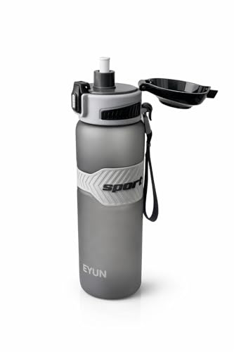 Generic - زجاجة مياه رياضية سعة 1000 مل مع ماصة وحزام حمل، زجاجة بلاستيكية مانعة للتسرب خالية من BPA لصالة الالعاب الرياضية واللياقة البدنية، زجاجة شرب قابلة لاعادة الاستخدام للمدرسة والمكتب والانشطة الخارجية
