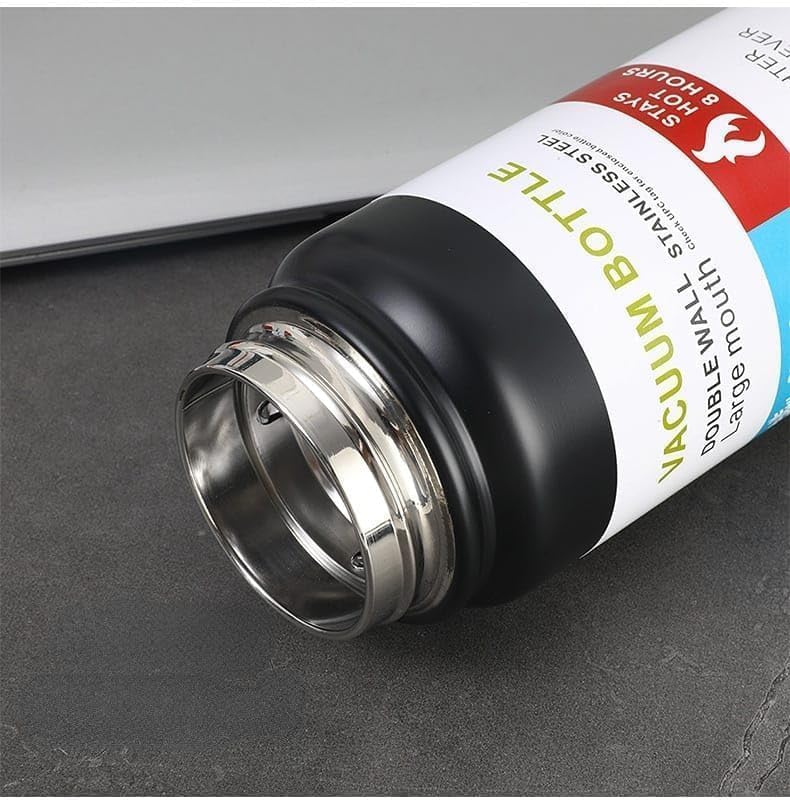 - على عكس زجاجات المياه البلاستيكية، فإن هذه الزجاجة مصنوعة من الستانلس ستيل 18-8 الآمن على الطعام ولا تحتوي على مادة BPA الخطرة على الإطلاق.