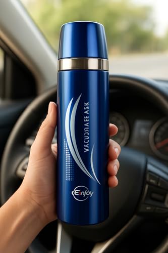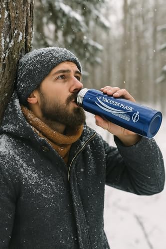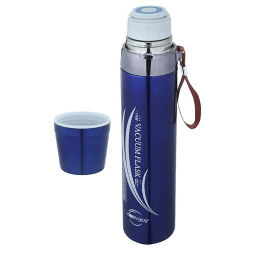 Generic - ترمس حراري معزول بتقنية التفريغ الهوائي بسعة 1 لتر من الفولاذ المقاوم للصدأ مع غطاء كوب وحزام يحافظ على المشروبات ساخنة أو باردة لساعات مثالي للسفر والمكتب والرياضة والتخييم (أزرق)