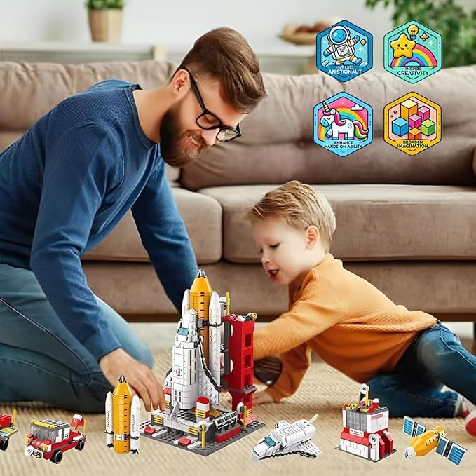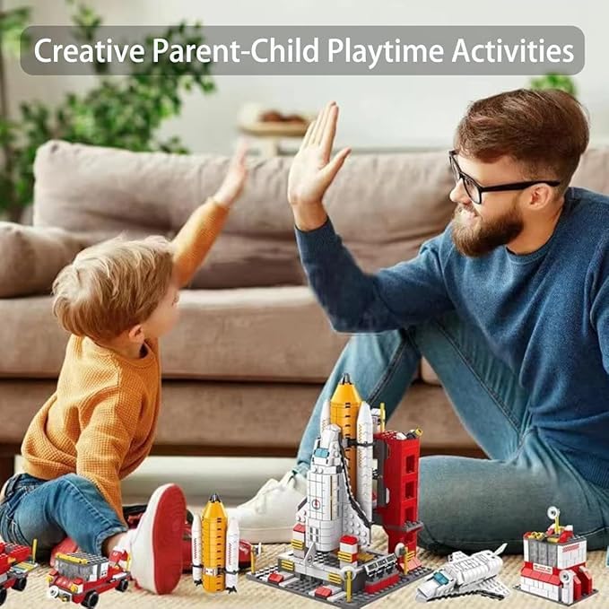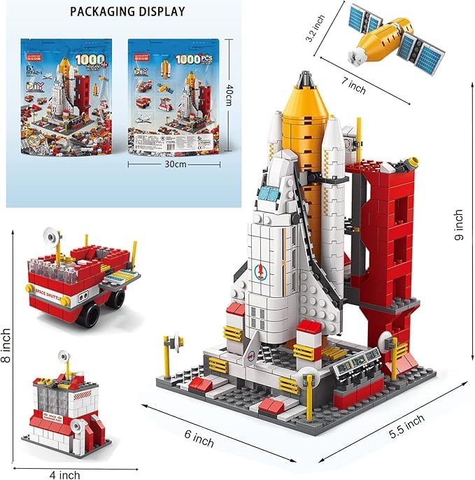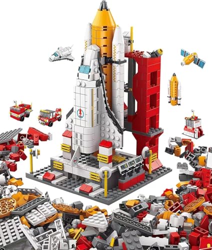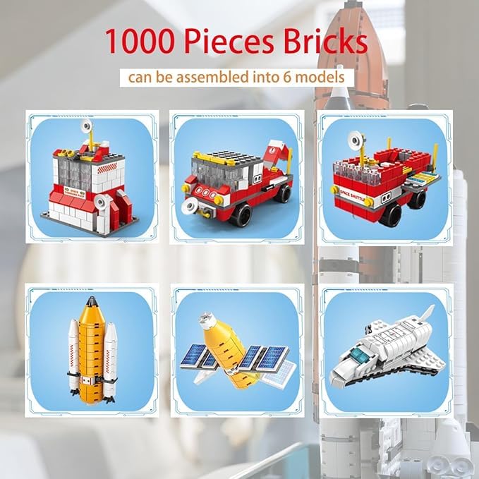 Generic - لعبة مجموعة بناء مكوك استكشاف فضاء مع مركز تحكم في الإطلاق 6 في 1 مع صاروخ نقل ثقيل وقاذفة ومكونة من 1000 قطعة للأولاد بعمر 6-12 سنة