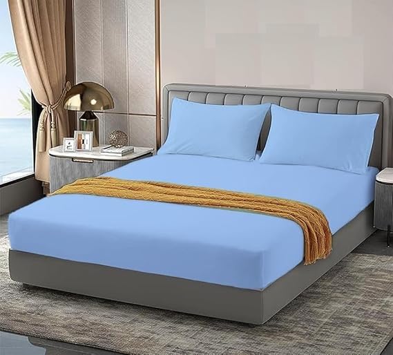 Generic - طقم ملاية استيك سادة للفنادق والمنازل والقري السياحية من نونو ستور مكون من ثلاث قطع لبنى 100سم *200سم*30سم لون لبنى قطن