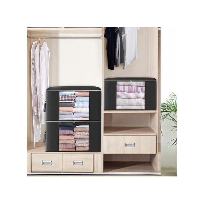 - 【مساحة تخزين واسعة 100 لتر】 تحمل الملابس والفراش والبطانيات والمستلزمات المنزلية بأناقة مع الحفاظ على جمالية بسيطة ومنظمة تقلل من الفوضى البصرية