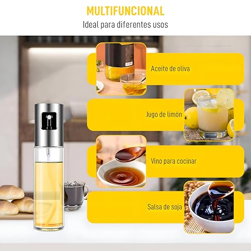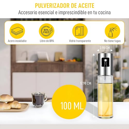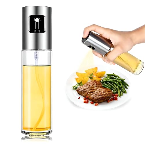 Generic - زجاجة بخاخ زيت من الزجاج والفولاذ المقاوم للصدأ، بتصميم مانع للتسرب وخالي من مادة بيسفينول أ، لزيت الزيتون والخل وعصير الليمون ونبيذ الطهي، يوزع رذاذ دقيق ومتساوي لاستخدامات المطبخ المتعددة، 100 مل