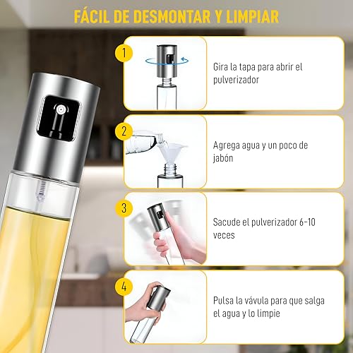 - يوفر الصمام المتطور رذاذًا ناعمًا وموحدًا يغطي الطعام بالتساوي، سواء كنت تستخدم زيت الزيتون أو عصير الليمون أو صوص الصويا. مثالي للقلايات الهوائية والمقالي والسلطات والخبز والمخبوزات، فهو يتيح لك التحكم في كميات الطعام بدقة، مما يدعم الطهي الصحي قليل الدهون.