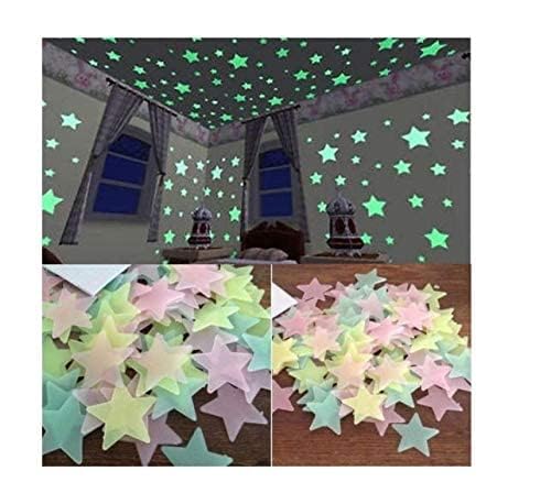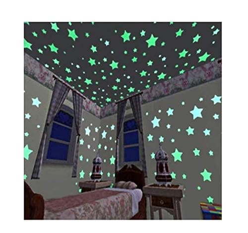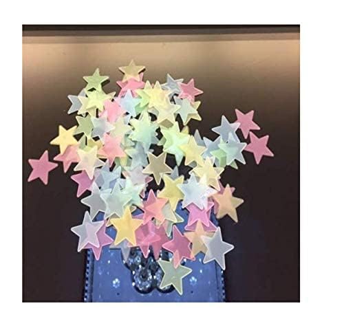Spaceshoop - 100 قطعة من ملصقات الحائط المضيئة على شكل نجوم بتصميم ثلاثي الابعاد متوهجة في الظلام البلاستيك الفلورسنت للديكور المنزلي والزينة والمناسبات الخاصة