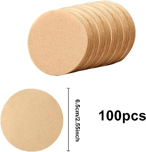 - المادة: لون الورق: غير مبيض، الكمية: 100 قطعة، القطر (للورقة الواحدة): 64 ملم، الشكل: دائري