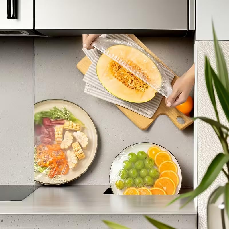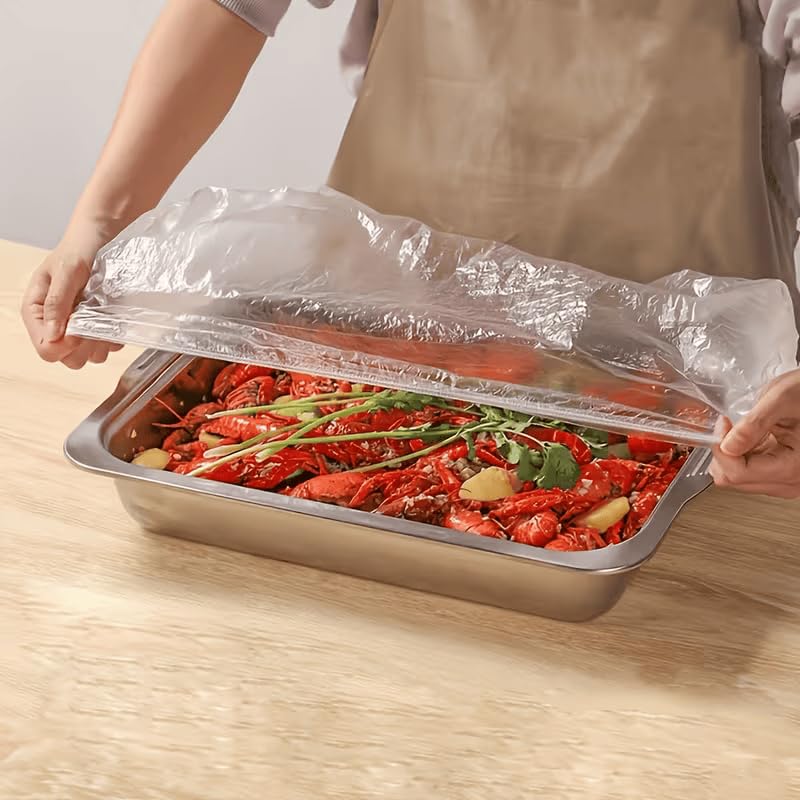 - ⚡ راحة توفر الوقت: قل وداعًا لصراع الأغلفة البلاستيكية الفوضوية. توفر هذه الأغطية المرنة سهلة الاستخدام حلًا سريعًا وخاليًا من المتاعب لبقايا الطعام وإعداد الوجبات، مما يوفر مظهرًا احترافيًا لأي مطبخ أو مخبز.