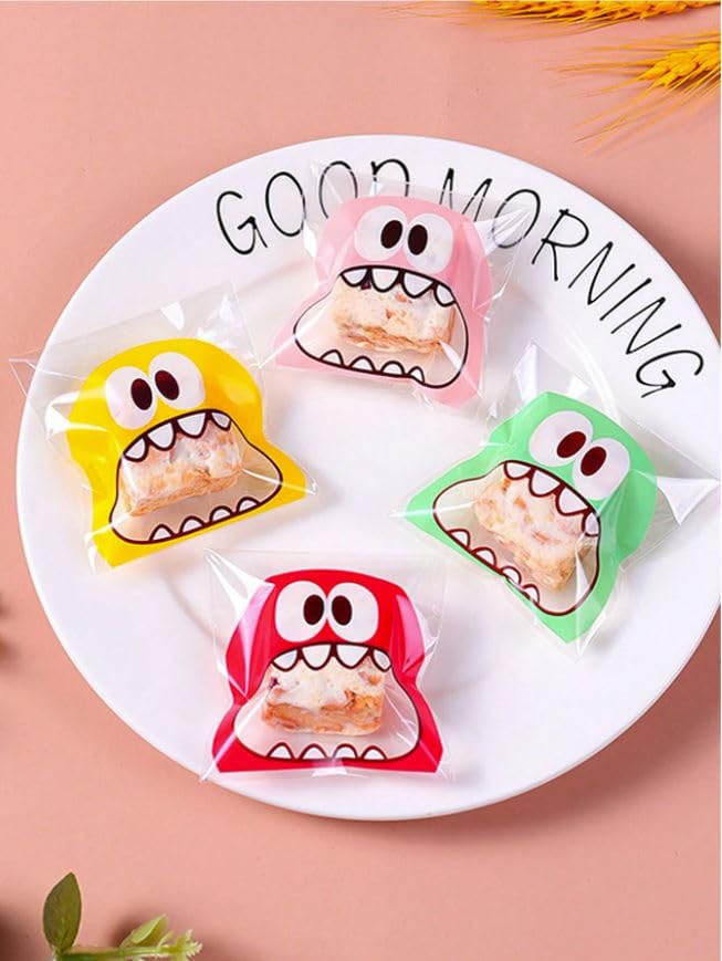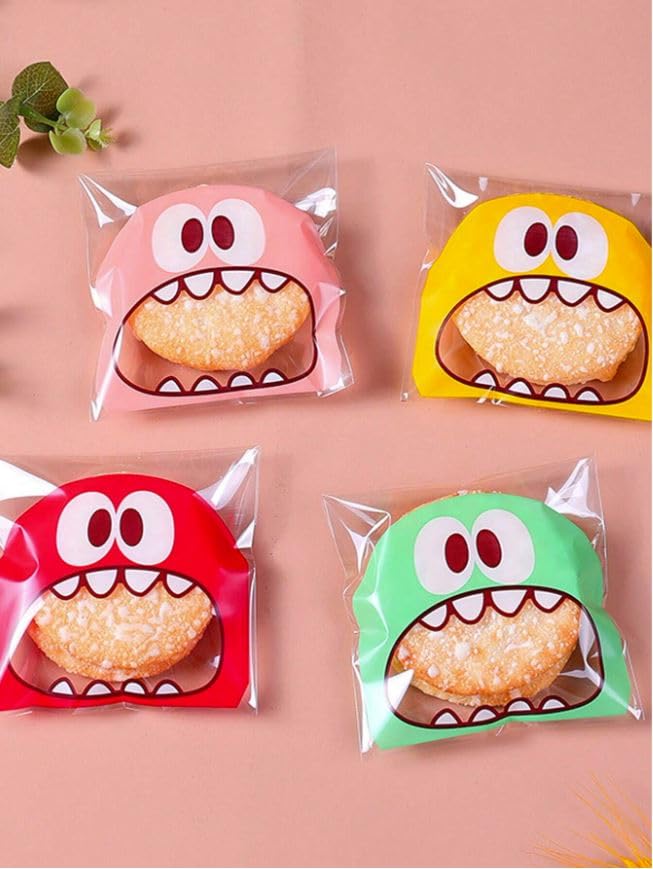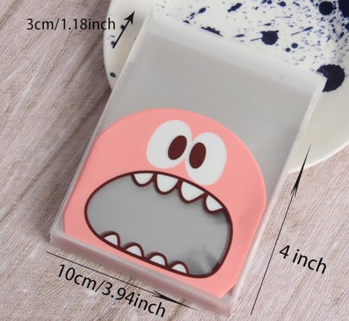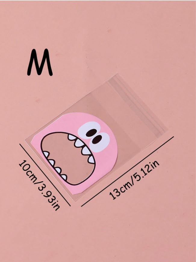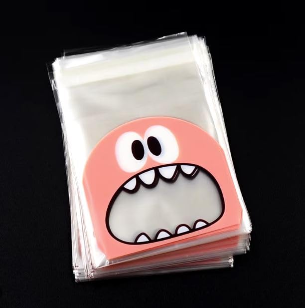 Generic - 100 قطعة من أكياس البسكويت اللطيفة من ليتل مونستر - 10 × 10 سم - أكياس بلاستيكية شفافة ذاتية اللصق للخبز - لوازم المدرسة أكياس طعام مناسبة للحلوى والشوكولاتة والكوكيز وغيرها. (زهري)