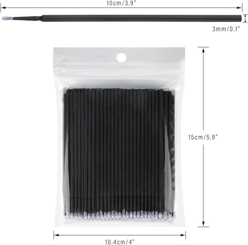 Generic - أعواد تنظيف صغيرة سوداء لوصلات الرموش، أداة توزيع صغيرة بسمك 2 ملم، أعواد قطنية صغيرة للاستعمال مرة واحدة لوصلات الرموش والأظافر وتنظيف المكياج، 100 قطعة (متعددة الألوان)
