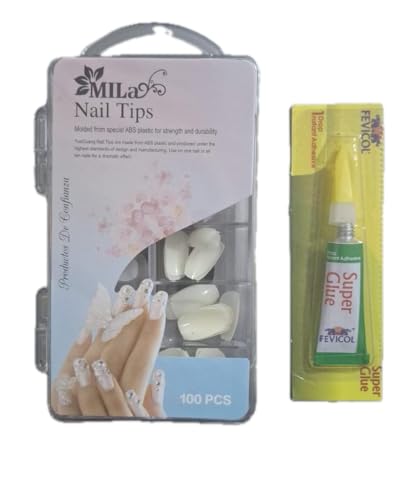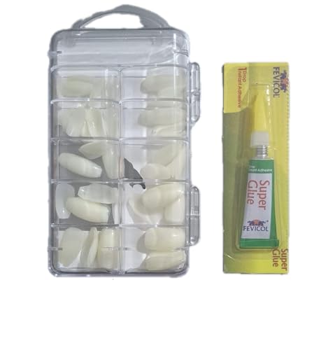 - آظافر صناعية اكريليك طبيعية احترافية ١٠٠ قطعة لون ابيض مع لاصق اظافر