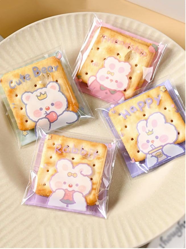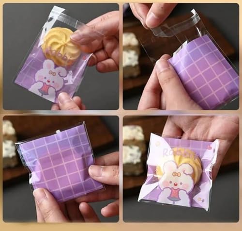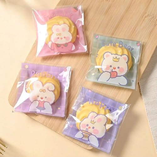 Generic - أكياس بسكويت سيلوفان بلاستيك لطيفة وشفافة شكل حيوانات ذاتية اللصق مثالية كهدية للكوكيز والحلوى والشوكولاتة والمخبوزات للهدايا لأي مناسبة، 100 قطعة، مقاس 10 × 10 سم