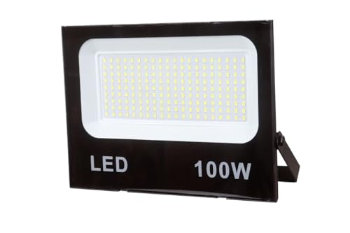 Generic - كشاف واجهات للأماكن الخارجية بقوة 100 وات إضاءة بيضاء ليد موفرة للكهرباء جسم معدني يحتوي على حامل معدني لضمان الثبات على الأرض