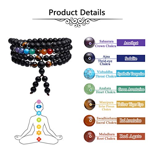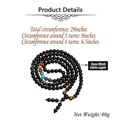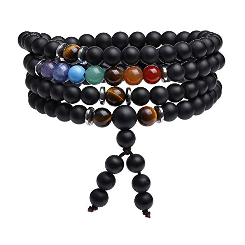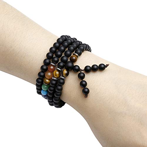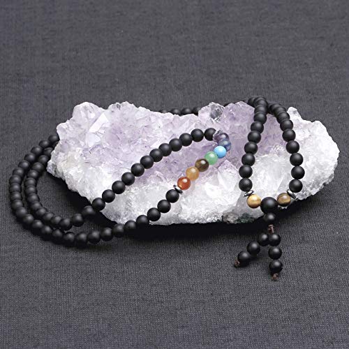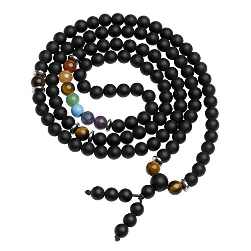 generic - 108 خرزة صلاة مالا سوار التامل 7 شاكرا كريستال الشفاء حجر لافا روك الزيوت العطرية الروائح العلاجية قلادة مجوهرات للرجال والنساء، حجر العقيق