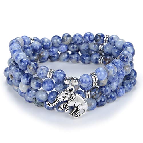 generic - 108 خرزة كوارتز مالا صغيرة على شكل فيل محظوظ وسوار ملتف وقلادة واكتشاف الذات لليوجا ومجوهرات ملهمة