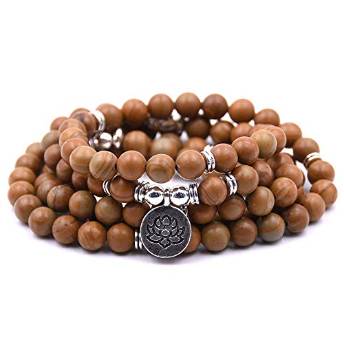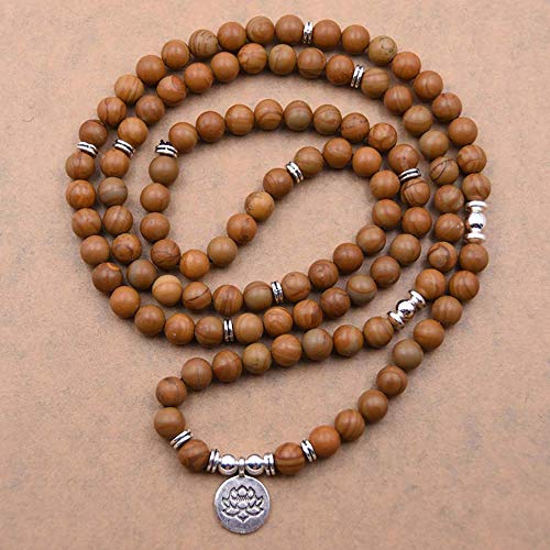 generic - سوار يوجا مالا من 108 خرزة طبيعية مع دلاية لوتس، حجر