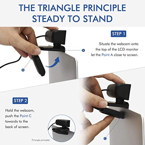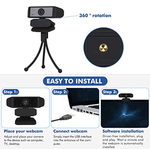 - * [كاميرا ويب بخاصية التوصيل والتشغيل] واجهة كاميرا ويب USB 2.0، تثبيت برنامج تشغيل مجاني. لا حاجة لقضاء الكثير من الوقت في تهيئة البث. فقط قم بتوصيل كاميرا الويب بجهاز الكمبيوتر المكتبي أو اللاب توب الخاص بك وشغلها على الفور. يتم تثبيت كاميرا الويب الخاصة بالكمبيوتر بأمان على شاشة اللاب توب أو يمكن وضعها على المكتب أو الرف للاستخدام.