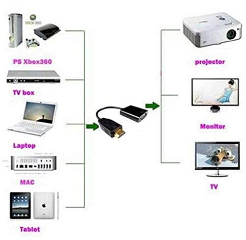 Generic - كابل محول فيديو HDMI ذكر إلى VGA أنثى 1080P للاب توب وجهاز العرض والكمبيوتر والدي في دي