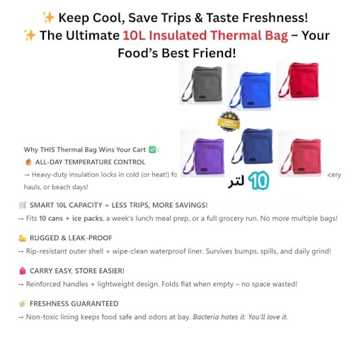- جاهزة للمغامرة طوال اليوم: سعة واسعة 10 لتر تحمل وجبات الغداء للعمل أو أعياد النزهة أو الوجبات الخفيفة على الشاطئ أو أساسيات السفر.