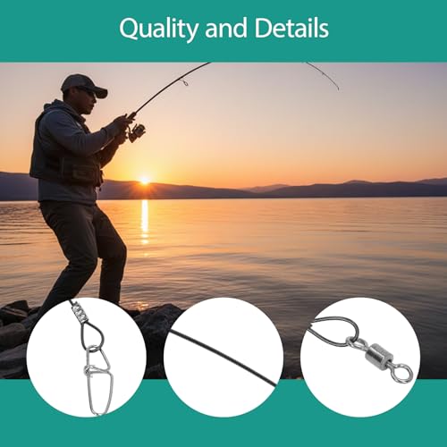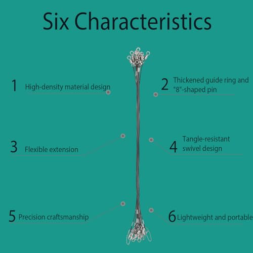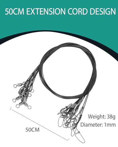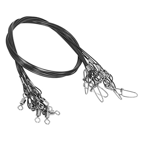 Yuecoom - وصلات خيط صيد السمك، خيط صيد السمك ستيل للصيد 50 م، وصلات خيط صيد السمك بحلقات صيد، أسود، 10 قطع