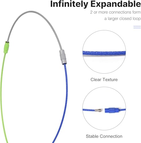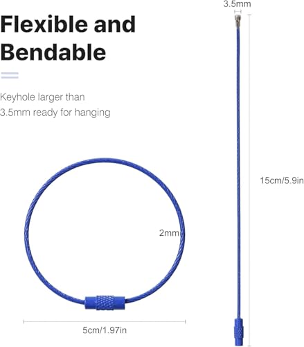 - [مواصفات المقاس]: طول سلسلة المفاتيح 5.9 انش (حوالي 15 سم)، قطر الحلقة 2 انش (حوالي 5 سم)، وقطر السلك 1.5 ملم. يمكن توصيل حلقتي كيبل أو أكثر لإنشاء حلقات أطول أو أكبر لتلبية الاحتياجات المختلفة.