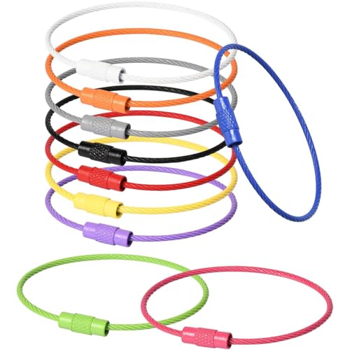 - [الكمية واللون]: تتضمن 10 حلقات مفاتيح ملونة على شكل كيبل، بإجمالي 10 ألوان وقطعة واحدة لكل لون.