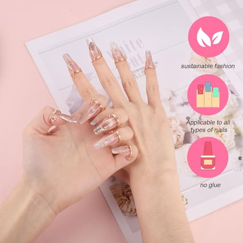 PEUTIER - 10 قطع من خواتم الأظافر من وودو، خواتم أظافر معدنية قابلة للتعديل وقابلة لإعادة الاستخدام والفصل للنساء، مجوهرات أظافر نسائية، زينة لأطراف الأصابع، هدية لتزيين الأظافر