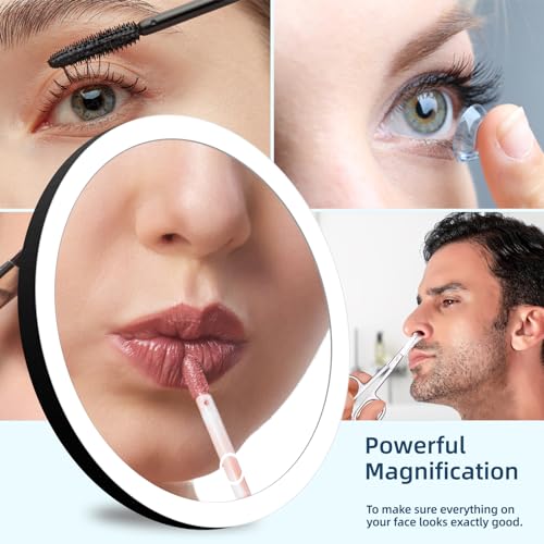 - 【تكبير 10 أضعاف】مراية تكبير 10 أضعاف مع إضاءة تعمل بشكل ممتاز لتطبيق تحديد العين أو الماسكارا أو تحديد الحواجب ورسمها ووضع العدسات اللاصقة والاحتياجات الأخرى للجمال والعناية بالبشرة.