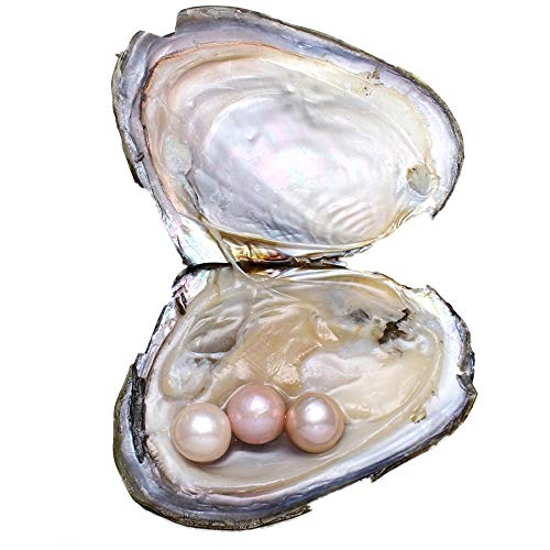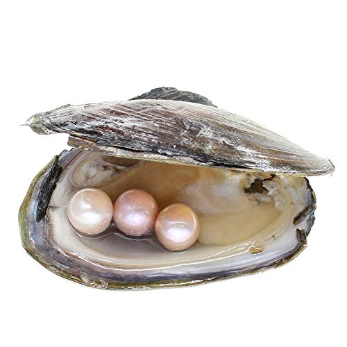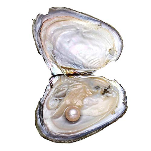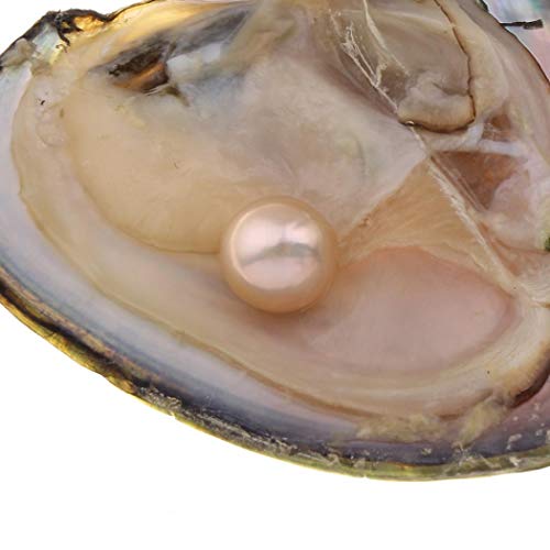 YYW - محار مع لؤلؤ مياه عذبة داخله مقاس 11-12 ملم من قطعة واحدة لعيد الحب وعيد الام وعيد الميلاد وحفل الزفاف (بينك)