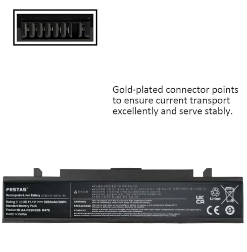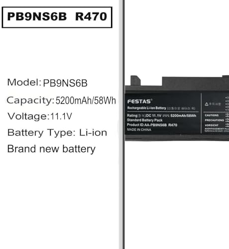 FESTAS - بطارية AA-PB9NC6B AA-PB9NS6B بقدرة 11.1 فولت 5200 مللي امبير في الساعة، لكمبيوتر محمول عادي سلسلة 80 من سامسونج R428 R429R428 R429 R519 R522 R523 R530 R540 R580 R470 RV510 RV511 R620 R718 R718 R770 20