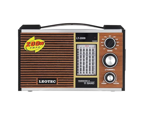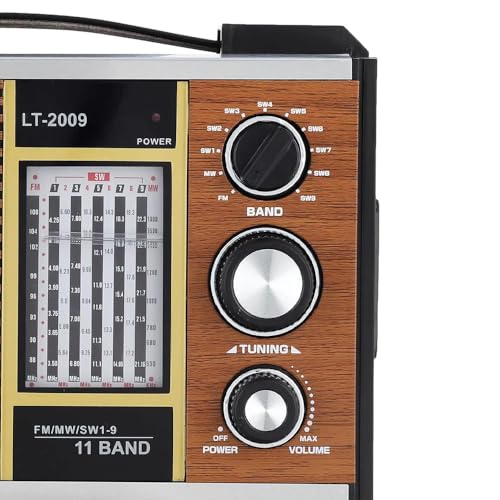 Generic - راديو عالي الحساسية بنظام تشغيل مزدوج تيار متردد / تيار مستمر AC / DC، يدعم 11 نطاقًا راديو اف ام / MW / SW1-9، مزود بمدخل سماعة وحزام يد للحمل بسهولة – موديل LT-2009