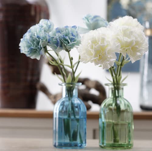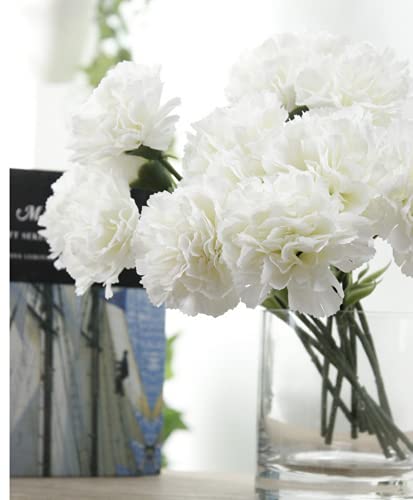 Rikyo - باقات جذوع قرنفل مقاس 28 سم، زهور صناعية مقاومة للأشعة فوق البنفسجية ولا تبهت، بتلات صغيرة من حرير القرنفل، نباتات أبدية لدعائم الصور وديكور المنزل وحفلات الزفاف (أبيض، 10 جذوع)