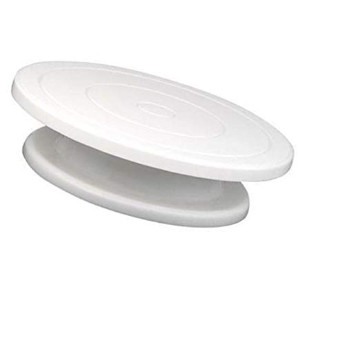 Spaceshoop - صينية خبز من البلاستيك مع حامل كيك دائري دوار مضاد للانزلاق لتزيين الكيك وطاولة دوارة للمطبخ، مقاس 28 سم، أبيض