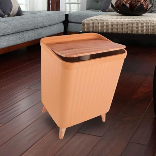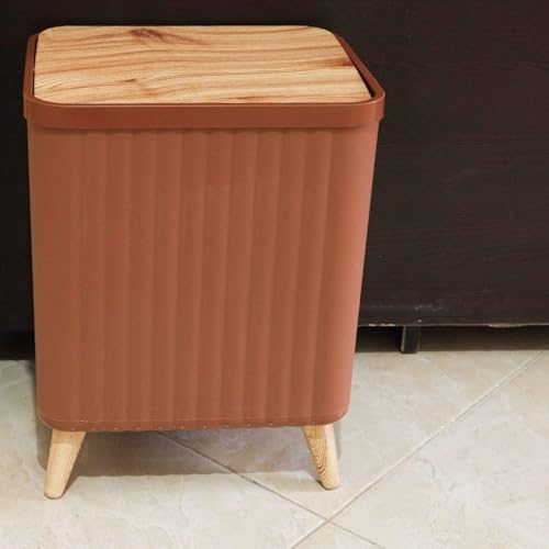 Generic - سلة مهملات متعددة الاستخدام بغطاء متحرك وأرجل بتصميم خشبي – سعة 11 لتر – مناسبة للمطبخ والحمام والمكتب