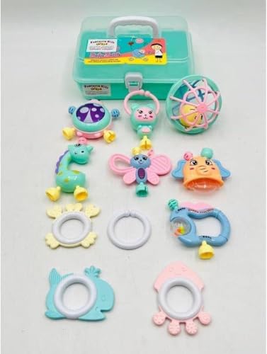 Generic - مجموعة شخشيخة الأطفال حديثي الولادة آمنة مع صندوق تخزين - ألعاب التسنين والتهدئة والعض، مواد آمنة خالية من البيسفينول أ، الوان جذابة لتنمية الحسية والمهارات متعددة الألوان، 11 قطعة