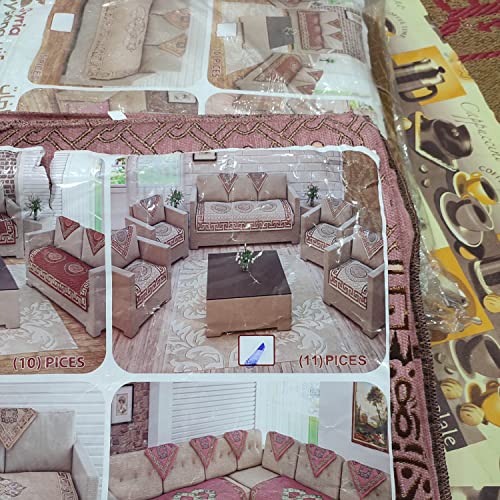 Generic - غطاء و كسوة انتريه 11 قطعه 1 كنبه طول 2 متر عرض 70 سم 4 كراسي 6 مناديل اللون كشمير يباع من مول الرحمه , متعدد الالوان