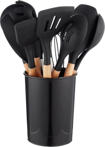 Generic - مجموعة توزيع يدوية خشبية من السيليكون وحامل بلاستيكي من 11 قطعة